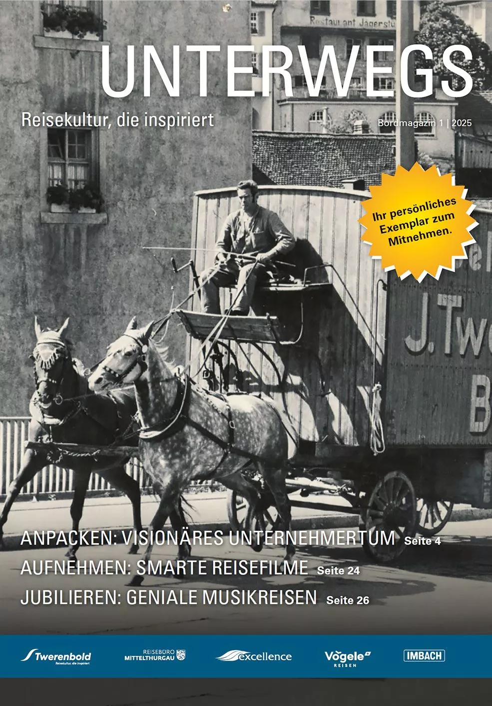 Im Kundenmagazin der Twerenbold Reisen Gruppe (Imbach Reisen, Vögele Reisen, Reisebüro Mittelthurgau und Twerenbold Reisen) finden Sie zweimal jährlich interessante Artikel über unsere Angebote und Destinationen, Tipps, Reiseberichte und vieles mehr. Blättern Sie online bequem durch das Magazin oder bestellen Sie sich ein Exemplar nach Hause.