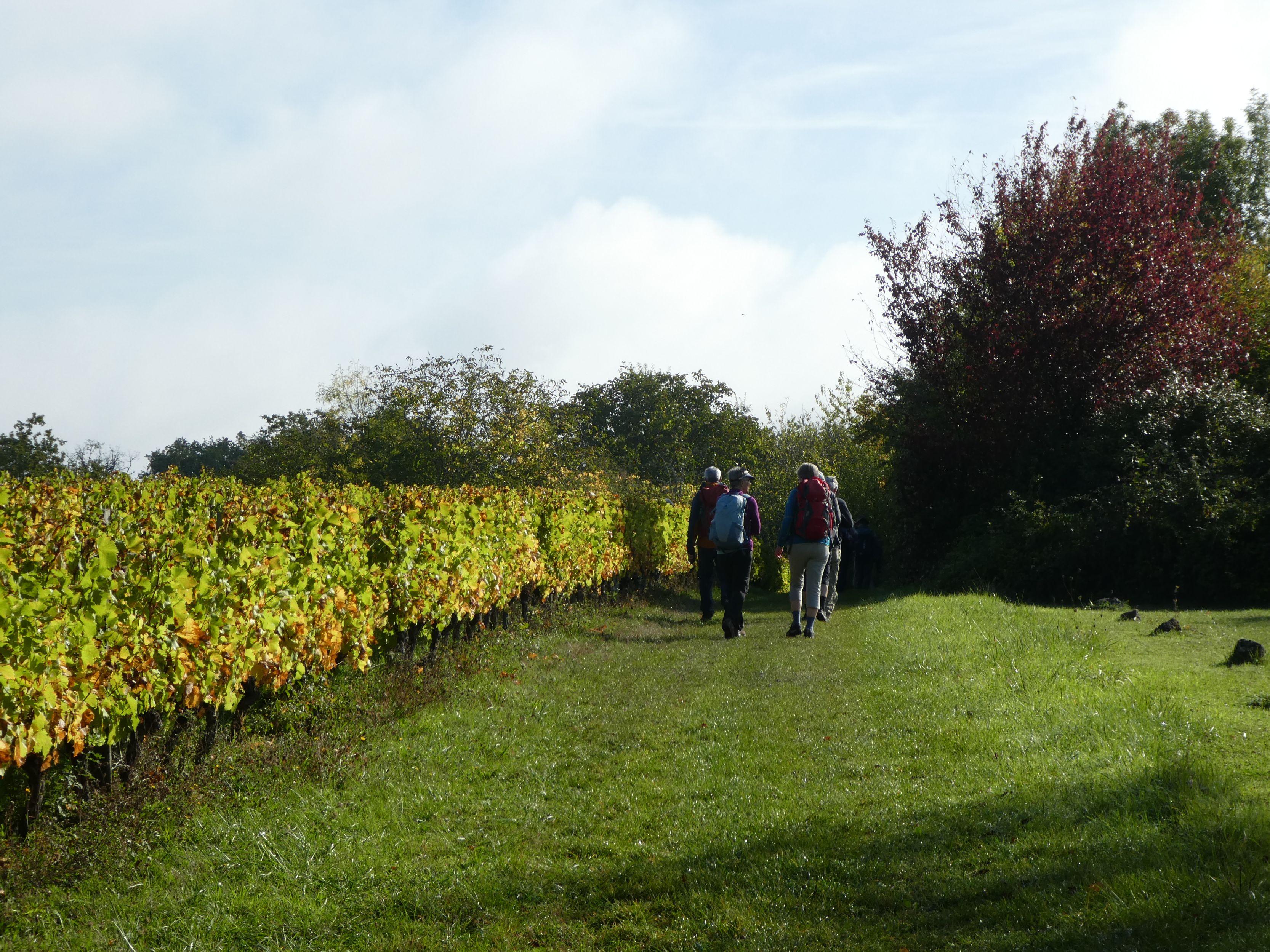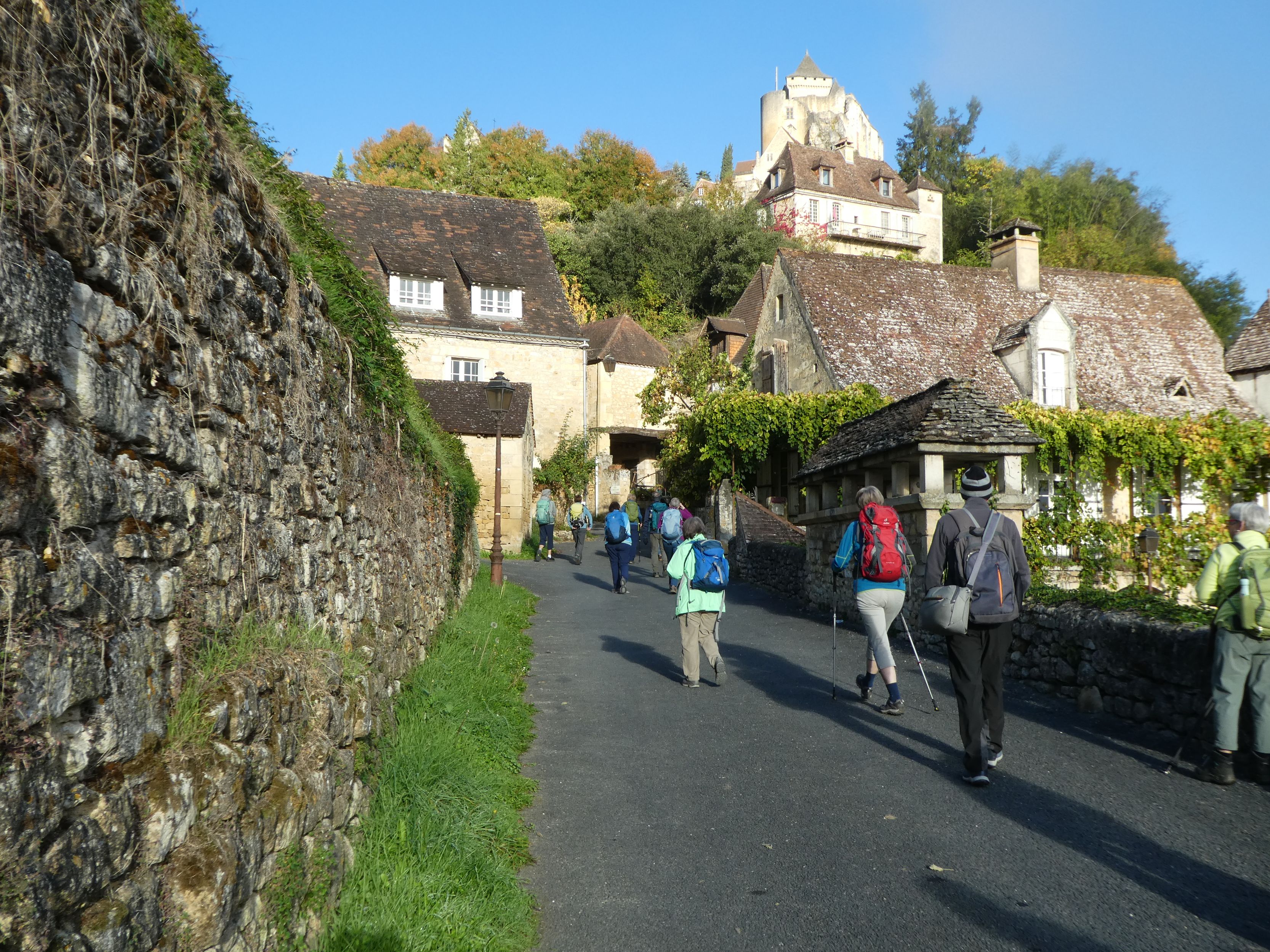 Heute werde es heiss, meint Karin und stellt unser Programm um. Wieder wandern wir der Dordogne entlang, wieder der Nebel, der uns eine Weile begleitet und begeistert, der lichte Wald, die Farben, man kann sich einfach nicht sattsehen. Mit der Sonne verschwinden Jacken und Pullover. Der Aufstieg nach Domme ist schon fast schweisstreibend, aber glücklicherweise relativ kurz. Ein hübsches, kleines Dorf, trotz sonnigem Sonntag nicht allzu überlaufen. Dann geht’s weiter in die Gärten von Marqueyssac hoch über dem Dordogne-Tal. Auf 6 km Spazierwegen kann man einerseits die verschiedenen Buchsbaumkreationen bewundern, andererseits wieder die Aussicht hinunter ins Tal. Der Abend endet mit einem Glas Vieille Prune, offeriert von Mickaël, Sie können sich mittlerweile ja wohl vorstellen, was das mit der Stimmung gemacht hat!